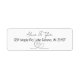 Black and white script Calligraphy text return address labels. Pretty for wedding invitations or newlyweds.