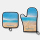 Bring coastal charm into your kitchen with this Oven Mitt & Pot Holder Set featuring a serene beach design: turquoise water, smooth golden sand, and a beige starfish in the corner. Personalize each piece with a name to create a unique and storybook-inspired kitchen accessory perfect for home cooking or gifting to beach-loving friends.