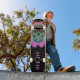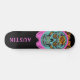 Bei bold in your face edgy day of the dead skateboard with painted sugar skull in orange, turquoise and hot pink haben wir chalkboard background with a quirky gemacht.