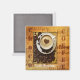 A photo frame magnet, featuring your own favorite picture framed by a vintage typography retro style design with a coffee theme in warm colors. Lovely gift for a coffee lover as well as to create a warm atmosphere in the kitchen. Also nice for a kitchen in Cuban style!