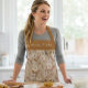 Delight the cook in your house with this personalized apron, featuring a vintage pattern of whimsical white daisies with brown foliage on a beige background. Near the top, the words "[Your Name's] Kitchen" or other text of your choice appear in editable handwriting script on a brown background.