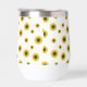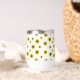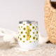 Brighten up your beverage game with this charming custom tumbler featuring a playful scattered sunflower pattern. Set against a crisp white background, the cheerful yellow blooms create a fresh and airy aesthetic that is perfect for any season. The center features a stylish golden brushstroke accent where you can add a custom name in elegant script, making it a truly personal accessory. Its compact, curved design is comfortable to hold and fits beautifully into a modern, botanical-inspired lifestyle, whether you're at home or on the go.