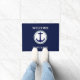 Dieses ist personifizieren Seeblau-Willkommens-Boots-Namen-Streifenfußmatte. Sie können Ihr LieblingsFoto addieren. Dieses ist perfekte Geschenkidee. Personifizieren Sie mit Ihrem Namen und anderem Text.