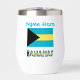 Le tondeuse à vin thermo personnalisé présente le Drapeau bahaméen et le mot BAHAMAS en dessous. Ci-dessus, ajoutez votre nom, en lettres bleues, pour une touche personnalisée ou un cadeau cool. Amusant à utiliser lors de réunions de famille, de groupes de voyage et de clubs. Parfait pour maman ou papa comme cadeau de fête des mères ou de Fête des pères.