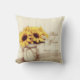 Ajoutez les noms et la date de mariage des jeunes mariés à ce carreau rustique de pot de maçon de tournesols de pays avec un arrière - plan en bois de grange et à un pot de maçon peint avec l'arc de ficelle et le bouquet de fleur de tournesol. Ce sont grands pour un carreau de souvenir de mariage campagnard.