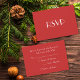 Créez votre propre personnalisation, moderne, blanc élégant script / typographie, noël rouge, fête personnalisée / événement / occasion spéciale RSVP invitation card. Entrez simplement votre date rsvp. Un RSVP élégant pour tous vos amis et votre famille, pour toute occasion, événement, rassemblement, que ce soit fête d'anniversaire, fête de remise des diplômes, célébrations d'anniversaire, réunions de classe, bar/bat mitzvah, réceptions, cérémonies, et plus encore.