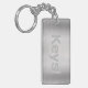 Personnalisez avec votre nom et un simple message, "Clés". Ce texte de script et l'arrière - plan en acier brossé est unique et frais. Un grand cadeau pour elle ou lui.