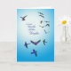 Express votre sympathie pour la triste perte d'une fille. Une carte simple pour express la plus triste des sentiments. Un troupeau d'oiseaux multicolores vole dans un ciel bleu.