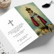 notre Carte de prière pliante - un hommage tendrement conçu pour honorer la mémoire chère de votre être cher. Ornée d'une élégante image de Jésus, Marie, ou d'un saint bien-aimé sur le devant, cette carte sert de balise réconfortante de la foi pendant les moments de deuil. Pourtant, il offre bien plus qu'une simple imagerie, c'est une toile de souvenir et de personnalisation. À l'intérieur, vous découvrirez un grand espace pour immortaliser l'héritage de votre être aimé avec une photo personnalisée, son nom, et les dates de sa naissance et de son décès. Ici, vous pouvez tisser ensemble leur histoire, incorporant des poèmes funéraires sincères, des prières chères, une nécrologie capturant leur essence, et des récits funéraires poignants qui résonnent avec leur esprit. En son coeur, cette carte incarne l'essence de la foi, un rappel tangible du lien éternel partagé avec l'être cher disparu. Qu'elle soit distribuée aux funérailles ou aux services commémoratifs, chaque carte porte le poids de la révérence et de l'amour, offrant aux participants un souvenir tangible au trésor. Pour ceux qui ont une foi proche de leur coeur, cette carte revêt une signification profonde. C'est un symbole de réconfort, un vaisseau pour la guérison des prières, et une expression tangible de l'espoir qui transcende le chagrin. Par ses options de personnalisation, il devient un témoignage de l'individualité et du cheminement sacré de l'âme défunte. En outre, au-delà de son utilisation immédiate, cette Carte de Prière Folding devient un gardien chéri, un lien tangible vers les souvenirs partagés, les leçons apprises et l'amour qui perdure au-delà du royaume physique. C'est une pierre de touche pour des moments de réflexion, une source de force en temps de doute, et un phare de lumière au milieu des ombres de la perte. En substance, notre Carte de Prière pliante n'est pas seulement une carte ; c'est un hommage sacré, un vaisseau d'amour, et un souvenir intemporel qui honore le lien éternel entre les défunts et ceux qui les tiennent chers.