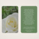 🌟 Sacré souvenir : Carte de prière funéraire Rose blanche 🌟 En l'honneur de votre bien-aimé disparu et de leur élégance intemporelle, nous vous présentons notre carte de prière funéraire Rose blanche sincère. Ce design serein présente une rose blanche captivante, symbolisant la pureté et la révérence, avec un feuillage délicat dans l'arrière - plan. Chaque pétale chuchote d'amour et de souvenir, offrant solitude et confort en période de deuil. 🕊️ Embrasse le Confort Divin : Au milieu de la beauté sereine de la rose blanche, trouver du réconfort dans l'embrasse réconfortante de la grâce divine. Notre carte de prière sert de phare d'espoir, guidant les coeurs en deuil vers la paix intérieure et la sérénité, alors qu'ils parcourent le chemin de la perte. 📷 Hommage personnalisé : Au dos de la carte, il y a un espace pour le nom et les dates de votre être aimé, qui sert de témoignage sincère de leur mémoire et de l'élégance qu'ils ont apportée dans le monde. Ci-dessous, une grande place est prévue pour les poèmes funéraires, les versets, ou les prières, vous permettant de customiser la carte avec des mots de souvenir et de réflexion. 💖 Souvenir éternel : Alors que la rose blanche fleurit d'une beauté intemporelle, qu'elle symbolise l'amour et la pureté endurants de l'esprit de l'être aimé disparu. Puisse leur mémoire être une source de réconfort et d'inspiration, vous guidant à travers des moments de souvenir et de réflexion. 🌟 Lumière guide : Tout comme la rose blanche est haute et gracieuse, qu'elle serve de lumière guide pendant votre voyage de chagrin. La présence de cette fleur exquise honore la mémoire de votre être cher et représente leur impact durable sur ceux qui les connaissaient. 🎁 Hommage sincère : Honneur à l'héritage de votre être cher avec des poèmes funéraires, des versets ou des prières au dos de la carte. Cet hommage personnalisé est une façon significative d'express votre amour et votre gratitude pour l'élégance qu'ils ont apporté dans votre vie. 🕯️ Amour éternel : En tenant cette carte de prière entre vos mains, qu'elle serve de rappel de l'amour persistant et des souvenirs chéris que vous avez partagés avec votre être cher disparu. Puisse-t-il vous apporter confort et paix, sachant que leur esprit vit dans la beauté intemporelle de la nature. Appréciez la beauté sereine de la White Rose Funeral Prayer Card : un hommage à la pureté, l'élégance et le souvenir qui transcendent le temps et l'espace.