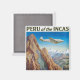 Vintage Reiseplakat für Peru, mit einem Frühflugzeug, das über eine Ruinenstätte der Anden fliegt.