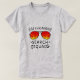 Das Material ist eigentlich gute Qualität, der Stoff ist nur etwas verzogen so dass der Drück leicht schief aussieht. Der Druck ist gute Qualität, habe das T-Shirt schon einige male gewaschen.