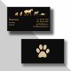 Pet Care Business Cards mit Bild eines stilvollen simulierten Goldtiers, einschließlich Hund, Katze, Pferd, Kaninchen und Schildkröte mit Pfotendruck auf der Rückseite, mit einem großartigen Textlayout, das Sie jetzt anpassen können. Elegante Pflegekarte, die eine hervorragende Vorlage für Tierärzte, Tierkliniken oder Tierärztekarten ist.