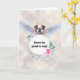 Ein hübscher, runder Aquarellkranz mit Eukalyptus-Blätter und blumenrosa Rosen hat das Gesicht eines englischen Bulldoggen, der über den oberen Rand schaut. Der Hund hat lange, erweiterte Engelsflügel und ein Imitat goldenen Halo und schaut auf die Formulierung herab; der Himmel hat einen Engel gewonnen. Die Innenseite hat das Gedicht "Eine Brücke genannt Liebe" Personalisieren Sie das Cover und die innere Botschaft des Beileids an ein Familienmitglied oder Freund lassen wissen, dass Sie für sie in ihrer schwierigen Zeit des Verlustes da sind.