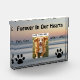 Feiern Sie das Leben Ihres Haustieres mit diesem personalisierten Foto-Block. Laden Sie einfach ein Foto Ihres verstorbenen Tieres hoch und legen Sie es über das Beispiel-Foto. Ändern Sie dann die Daten und den Namen des Begleiters. Ein schönes Geschenk für jemanden, der vor kurzem einen lieben Haustier verloren hat.