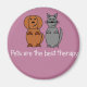 Ich entwarf diesen lustigen Magneten, der darauf basiert, dass Haustiere die beste Therapie für psychische Erkrankungen (und für jedes Lebensproblem) sind. Ich habe herausgefunden, dass Tiere einen heilenden Power haben, den man nicht erklären kann, sie scheinen nur zu wissen, wenn ihre Menschen nicht gut Gefühl sind, und sie wissen genau, wie man einem beim Umgang hilft (meiner Erfahrung nach).
