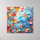This richly textured abstract artwork captures the beauty of scattered petals suspended in motion, blending painterly depth with vibrant color harmony. Thick, flowing strokes of blue create a dynamic, almost ocean-like foundation, while warm petals in shades of coral, crimson, gold, and soft blush drift across the surface. The layered paint texture gives the piece a tactile, almost sculptural quality that feels alive and emotionally engaging.