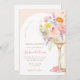 This stunning invitation features a golden prosecco glass adorned with delicate colorful florals and petals. The design is perfect for a chic Petals and Prosecco themed brunch and bubbly celebration.