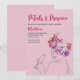 Feiern Sie die Braut in Stil mit unseren Petals und Prosecco Junggeselinnen-Abschied Einladung! Dieses charmante Design besticht durch die Silhouette von Champagner- und Frauenglas, prächtige Rosa- und lila Farbtöne und einen wunderschönen Blumenkranz. Unsere Petals und Prosecco Junggeselinnen-Abschied Einladung ist sicher, den Ton für eine fabelhafte Feier Set!