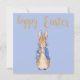 Peter das Kaninchen auf einem blauen Hintergrund. "Happy Oaster" Text in Gold.