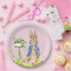 Peter der Rabbit in seinem Garten überprüft sein Vogelhaus.