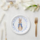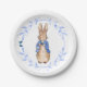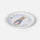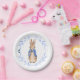 Peter der Kaninchen mit einem niedlichen blauen Schmetterling mit einem pastellblauen Blattkranz. Ein perfektes Geschenk für diese spezielle Babydusche!
