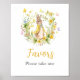Ajoutez une touche de charme à votre baby shower avec cette affiche de faveurs à thème Peter Rabbit, Avec ses charmantes aquarelles de Peter Rabbit et des fleurs sauvages, cette affiche est parfaite pour guider les invités à leurs faveurs de remerciement. Le design élégant s'ajoute à toute douche à thème jardin ou livre d'histoires, créant ainsi un affichage cohésif et délicieux.