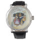 Uhr, Vintage Männeruhr mit schwarzem Lederarmband