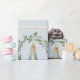 Peter Rabbit Wrapping Paper - Aquareller Peter Rabbit Hase in einer blauen Jacke, umgeben von handbemalten Aquarellfarben, Beeren und Blattwerk. Dieses Verpackungspapier wäre für eine Babydusche oder eine Geburtstagsparty für Kinder bezaubernd.