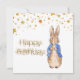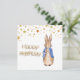 Peter das Kaninchen mit einem glitzernden goldenen Sternen Happy Birthday in dekorativem Text