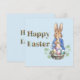Peter das Kaninchen mit einem Korb von Ostereiern Happy Oaster in dekorativem Text aus Ostereiern