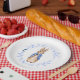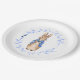 Peter der Kaninchen mit einem niedlichen blauen Schmetterling mit einem pastellblauen Blattkranz.
