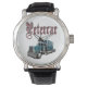 Uhr, Vintage Männeruhr mit schwarzem Lederarmband