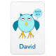 Cet aimant impressionnant présente un dessin mignon d'une chouette bleue aux yeux somnolents, un bec large ouvert et de jolies plumes moelleuses. Le hibou tient un ballon bleu poudreuse. Il y a du texte bleu pâle à l'intérieur du ballon qui dit, "Petit garçon". C'est le cadeau parfait pour célébrer un nouveau-né garçon. Il y a du texte personnalisable sous l'image pour que vous puissiez inclure le nom de votre bébé garçon.