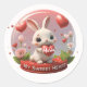 Petit lapin blanc mignon tenant un coeur valentin rouge amour personnalisé Sticker rond classique, le lapin est à l'intérieur d'un globe de verre avec "My Sweet Heart Maria" vous pouvez changer le nom. Express your Love avec ce sticker classique Classic Round de lapin valentin, plein d'élégance et d'amour. Qu'en pensez-vous ?