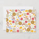 Des cartes pour notes plats avec un petit-déjeuner à thème motif. Le design se compose de gaufres, toasts, pamplemousse, orange, jus d'orange, fourchettes, couteaux, bacon et oeufs.