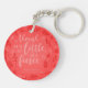 Ce porte - clé présente la citation du Rêve de la nuit d’été de William Shakespeare "Bien qu’elle ne soit que petite, elle est féroce" entourée de fleurs et de feuilles contre un arrière - plan à gradient rouge.