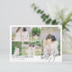 Magnifique carte de remerciements mariage de 3,5" x 5" avec un montage photo auquel vous pouvez ajouter cinq de vos photos de mariage. Le Merci est écrit dans un magnifique script de calligraphie dans le coin inférieur droit, avec des boucles. Ajoutez vos noms et votre date et emplacement mariage dans une police élégante. Le dos est imprimé avec votre message de remerciement (ou supprimer pour écrire à la main).