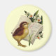 Image victorienne d'un petit oiseau regardant un message dans un livre qui se repose contre un bouquet de jonquilles. Le message dit : "Salutations de Pâques. Paix sur terre, bonne volonté pour les hommes."