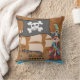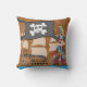 Un garçon pirate aux cheveux rouges porte un casquette avec un perroquet assis sur le bord. Un bateau de pirate avec canon et drapeau crâne et os croisés sur un coussin votre petit pirate ne manquera pas d'aimer !