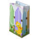 Bébé canard avec grenouille verte dans l'herbe avec clôture couleur pastel.