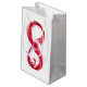 Infinity symbole of continuous stream of red pouring into glass glass glass on white background.
