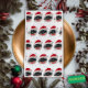 Pekingese Dog Breed Christmas Stars présente une aquarelle d'un Pekingese avec un Casquette Père Noël rouge et un collier de Noël rouge.
