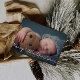 design de script blanc avec une belle photo bébé nouveau-né, l'image et le texte détail de cette carte peut être personnalisée.