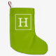 Petite Chaussette De Noël Monogramme initial encadré blanc vert pomme