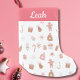Célébrez les fêtes avec ce ravissant stock de Noël rose avec des pastels de pain d'épices brun et rose, des flocons de neige, des sucres de canne, des ornements, des bougies et des cadeaux. Personnalisez ce joli bas avec un nom.