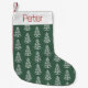 Bring timeless holiday charm to your mantel with this custom Christmas stocking! Featuring a seamless pattern of abstract line art Christmas trees in crisp white, this stocking is the perfect blend of tradition and personalization. Add any name to create a unique keepsake for every family member — kids, adults, or even pets!