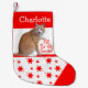 Ce stock de Noël est destiné à être customisé avec votre propre choix de nom. Il montre un chat tabby orange nommé Charlie avec sa langue qui sort dans l'attente impatiente de tous les bonbons que Père Noël laissera dans ce bâton. Entre ses pattes se trouvent les mondes, "Remplissez 'Er Up, Père Noël !"
