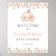 Bienvenue invités à votre douche à thème "Petit citrouille" à thème bohème avec ce charmant panneau d'accueil imprimé sur une affiche. Orné d'adorables fleurs rose pastel et pêche. Parfait pour donner le ton à votre événement et accueillir les invités avec style, chaleur et charme. Idéal pour l'Halloween classique, les baby showers d'automne, les fêtes de prédilection et les réunions élégantes.