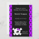 Invitations d'anniversaire de crâne blanc avec un crâne et un graphique croisé.arrière - plan pourpre et noir pointillé qui correspond à l'arc pourpre du crâne. Personnaliser avec les détails de votre fête.délicieux doodles